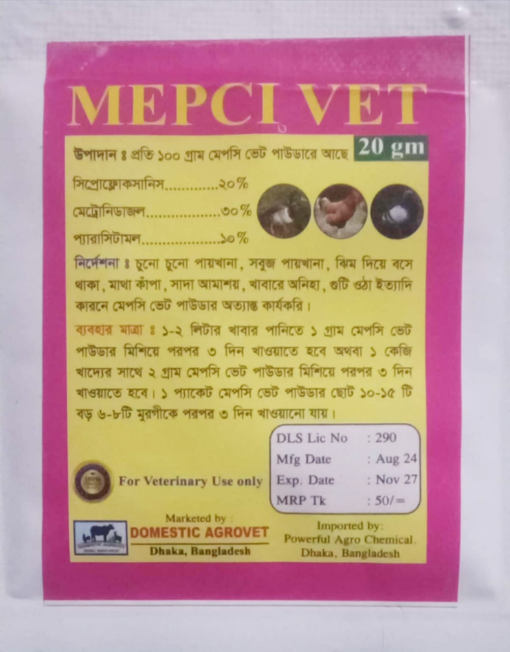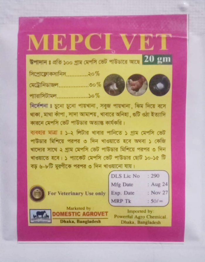 - 📦 ১ প্যাকেট মেপসি ভেট পাউডার ১০–১৫টি বড় অথবা ৬–৮টি মুরগিকে ৩ দিন খাওয়ানো যায়।